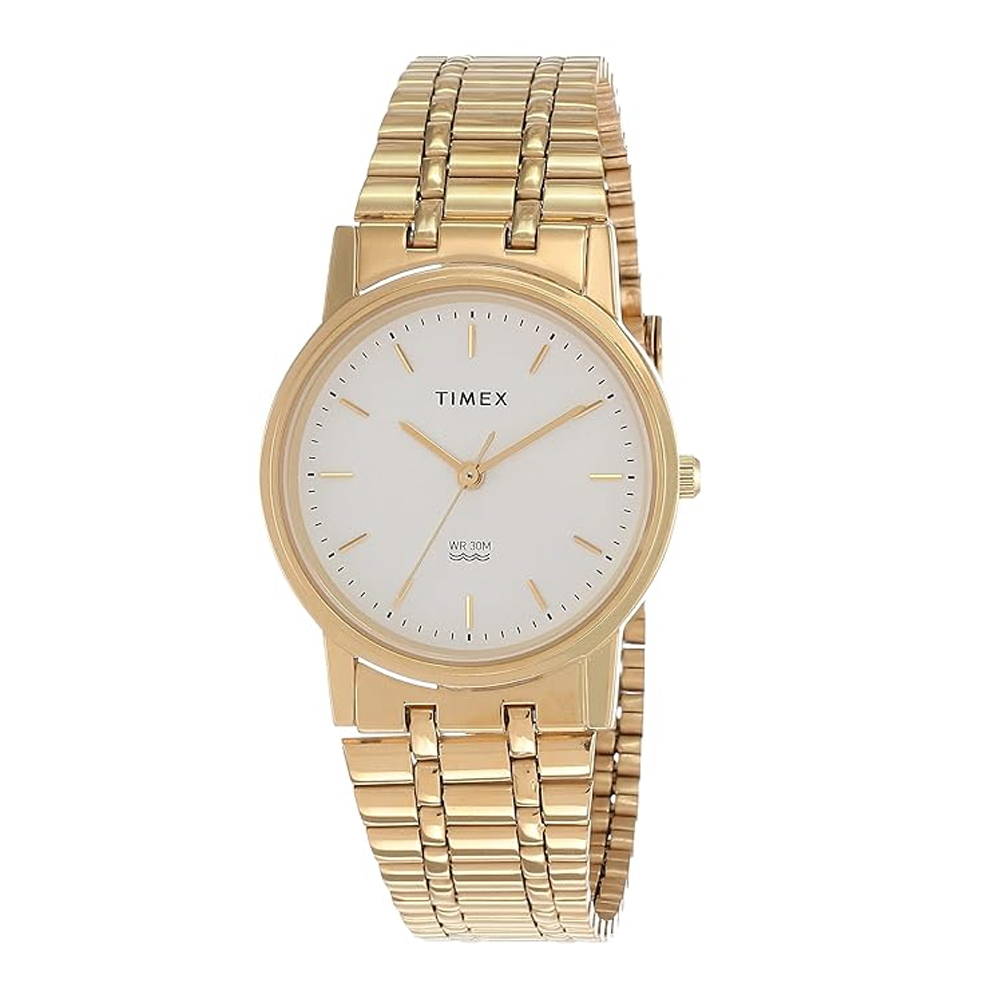 TIMEX Stainless Steel Classics Analog White Dial Men Watch-A303, Bandcolor-Gold